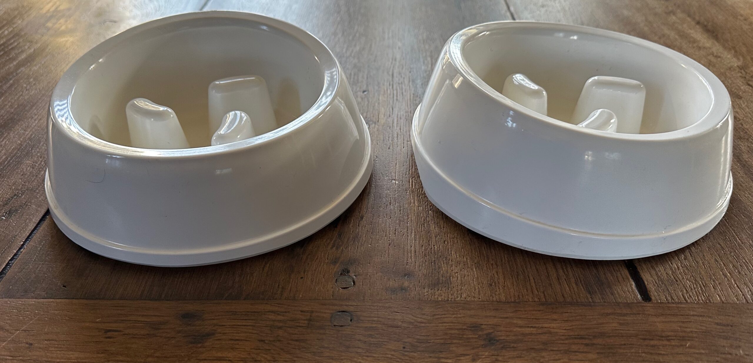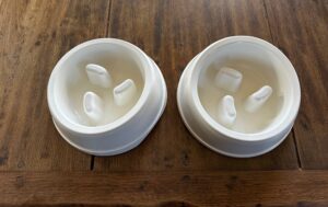 stevige bak die op rubberpootjes staat zodat schuiven minder snel gebeurt; is echt ideaal voor de teckel die alles achter elkaar naar binnen schrokt, langzaam eten is zoveel beter voor de gezondheid.