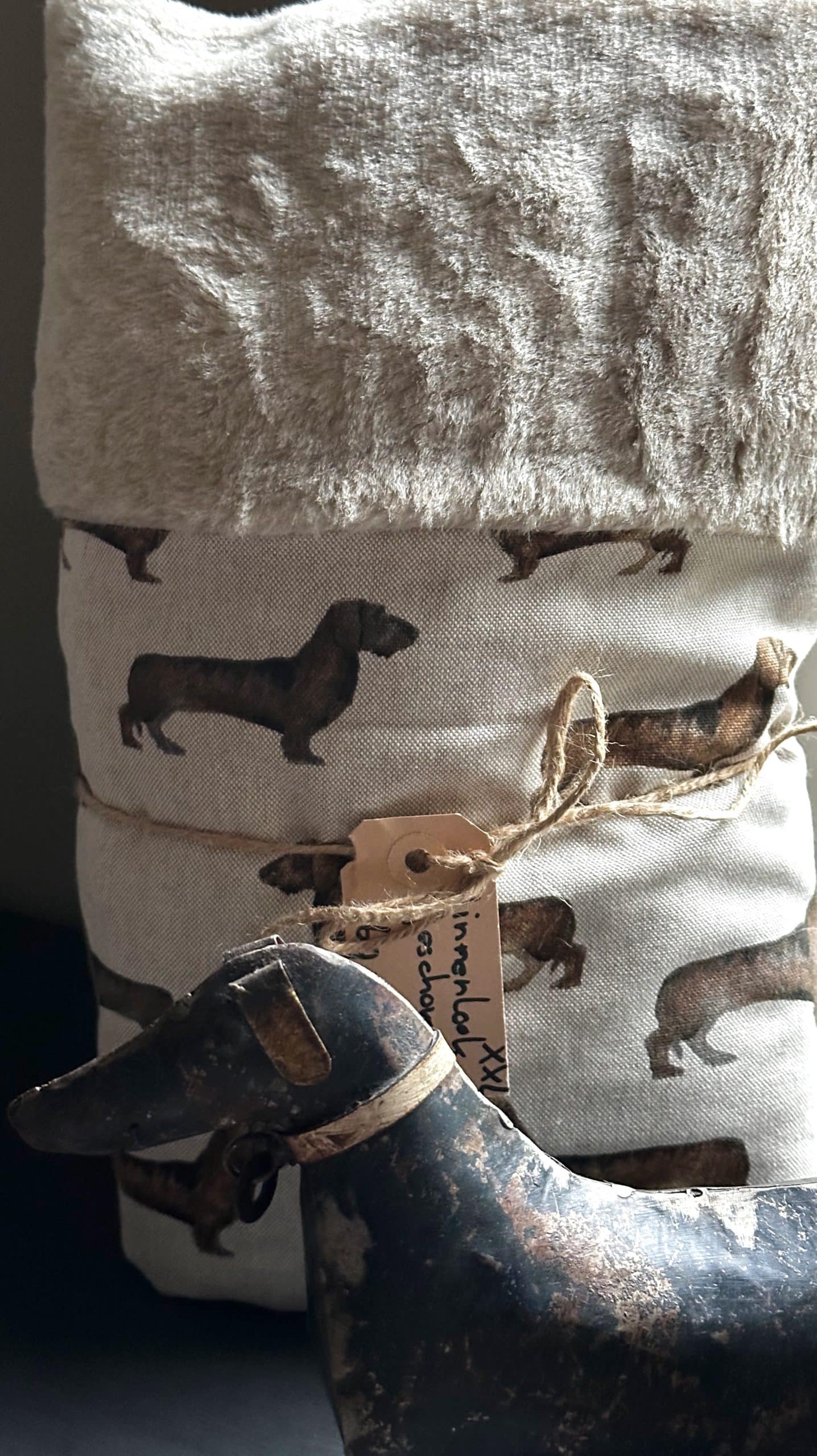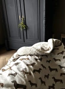Teckelslaapzak in royale maat, heerlijk warm geschoren vacht aan de binnenzijde, hoe luxe mag het zijn… uren lang wegdromen voor de ware levensgenieter.
