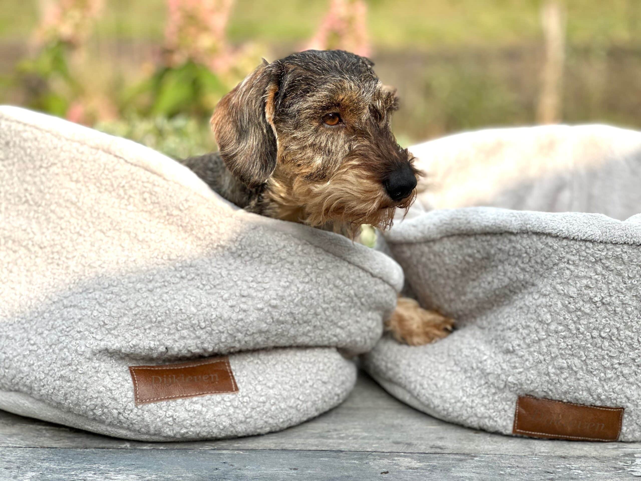 Weldagig en warm is dit extra zachte soezelnest van boucle met velvet binnenzijde; kleurstelling in Ton sour ton geeft het een warme sjieke uitstraling.