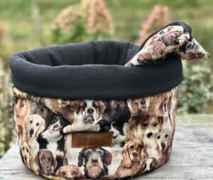 Royaal soezelnest gemaakt van gobelin met fleece binnenzijde; comfortabel warm en een lust voor het oog. tussen alle mooie hondenrassen springt er toch maar ééntje uit…