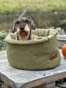 Fantastische kleurcombinatie heeft dit soezelnest gemaakt van twee schitterende stoffen, we hebben een donkere en lichtere versie.